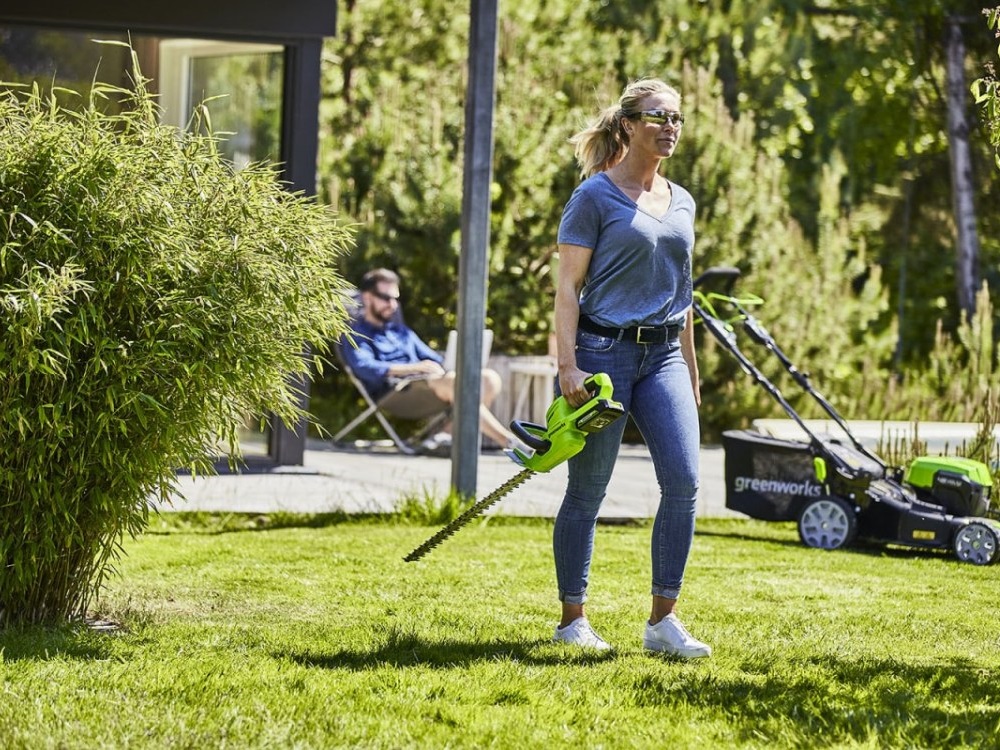 - Ножницы для живой изгороди GREENWORKS G24HT56 отличаются высокой эффективностью при работе и позволяют обрезать ветви до 18 мм в диаметре.