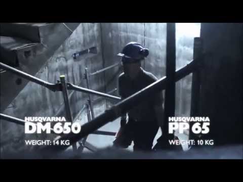 Бурилка Husqvarna DM 650 оснащена системой пылеудаления и водяным охлаждением двигателя, при минимальных потребностях в обслуживании.