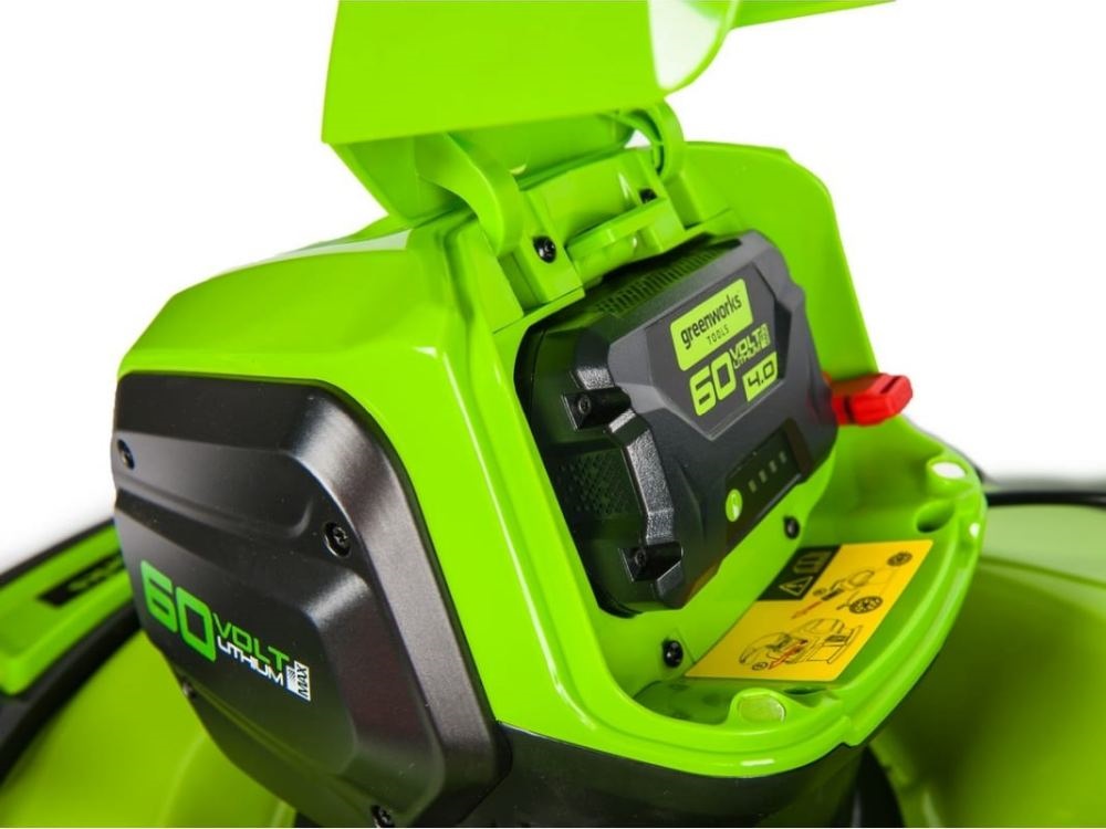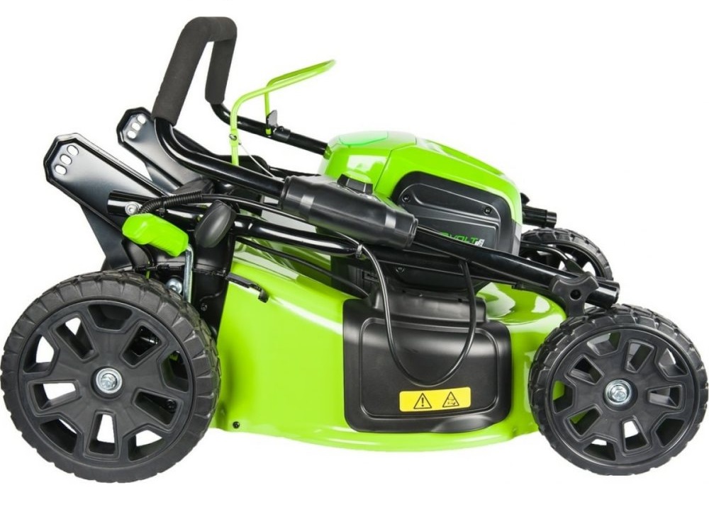 - Эргономичная форма рукоятки данной модели и удобно расположенные органы управления снижают утомляемость во время использования устройства. Рукоятка легко складывается, что обеспечивает беспроблемную транспортировку газонокосилки GREENWORKS GD60LM46SP а так же ее хранение.