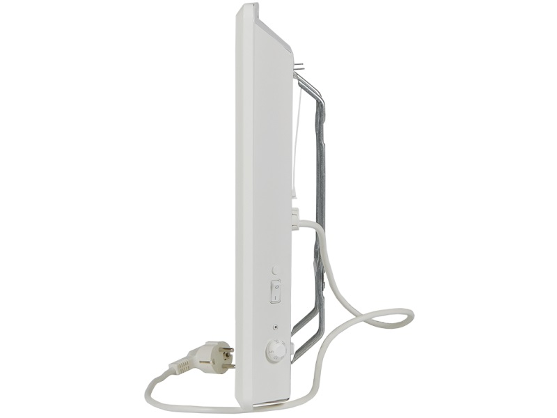 220В, 0,75кВт, для обогрева помещений 7-11м2, размеры (ШxВxГ) 525х400х55мм. Вес 3,7кг. В комплектации интегрированный несъёмный термостат с регулировкой колесиком комфортной температуры. II класс электрозащиты, защита от брызг воды IP24.