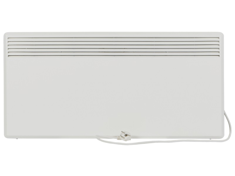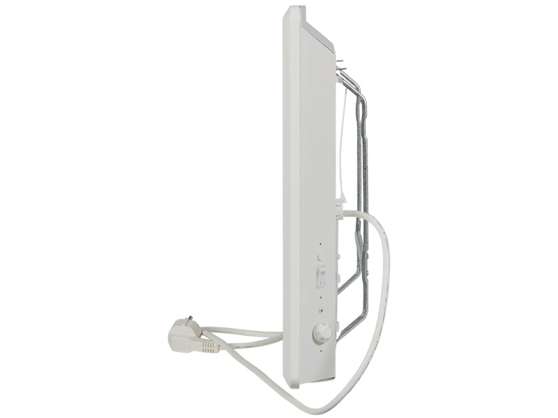 220В, 1,25кВт, для обогрева помещений 12-16м2, размеры (ШxВxГ) 825х400х55мм. Вес 5,7кг. В комплектации интегрированный несъёмный термостат с регулировкой колесиком комфортной температуры. II класс электрозащиты, защита от брызг воды IP24.