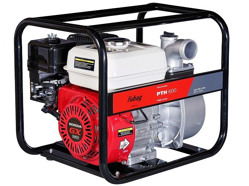 - Надежная и мощная мотопомпа Fubag PTH 600 для перекачивания чистой воды.
