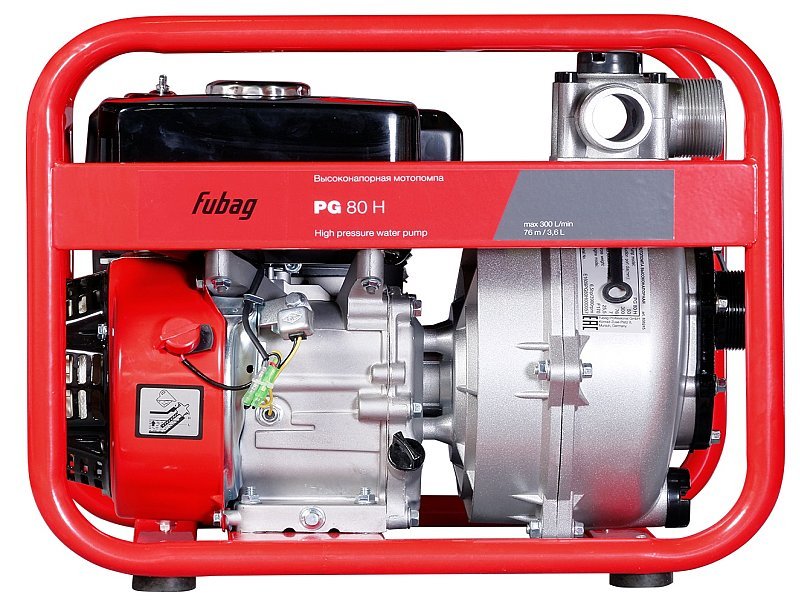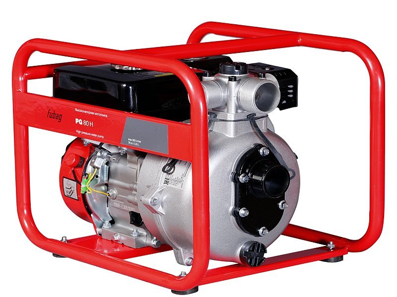 - Высоконапорная, компактная и простая в обслуживании мотопомпа Fubag PG 80 H для перекачивания чистой воды.