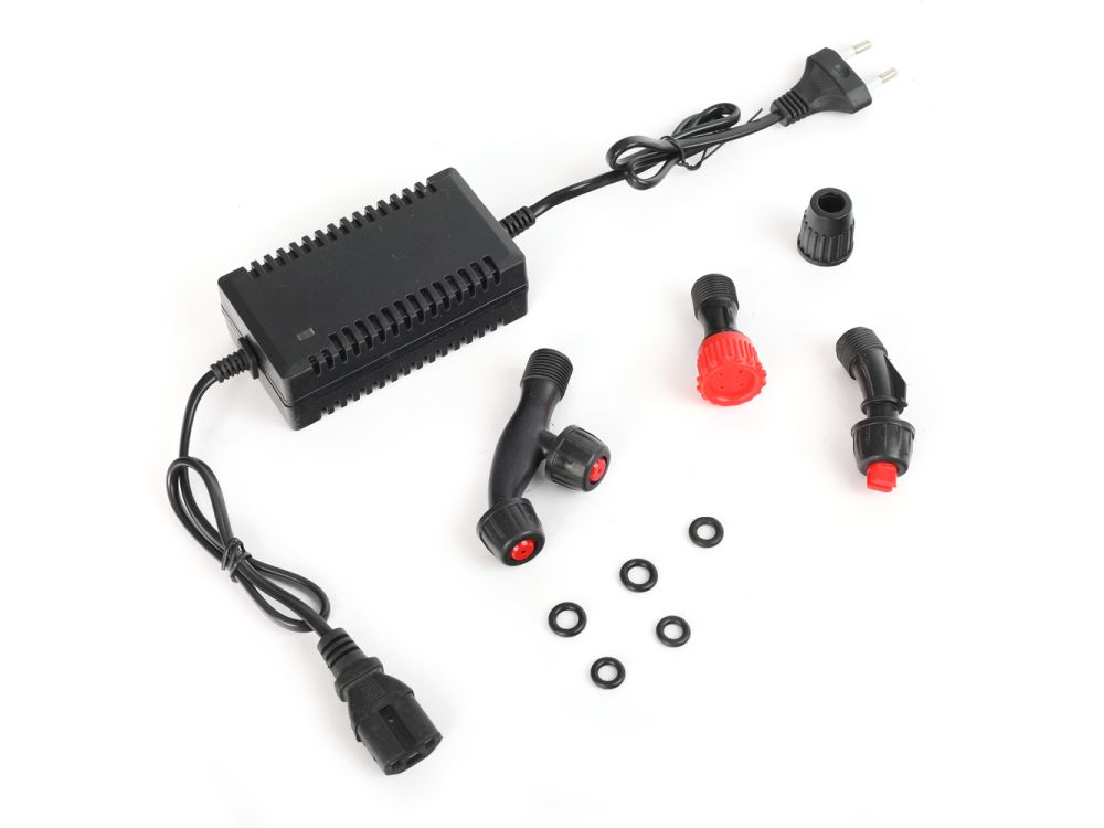 - В комплект поставки входит фильтр (фильтрует осадок в пестицидах) и сменные насадки для равномерного распыления раствора.