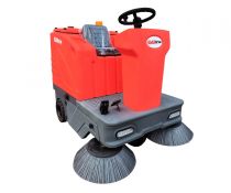 24В / 105Ач, 1,12кВт, тяговый привод 5,5км/ч. Рабочая ширина - 1000мм, бункер - 50л, 2 боковые щетки. Максимальная производительность - 5500 м2/ч. Вес - 224кг. Аккумулятор и зарядное устройство в комплекте поставки.