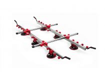 Система предназначена для стягивания и выравнивания уровня каменных плит с высокой точностью, а так же тяжелых деталей с гладкой поверхностью: керамогранит, листовой металл, изделия из стекла и пластика. Система имеет регуляторы по высоте и крепежные элементы для фиксации заготовок в нужной плоскости. Регулировка расстояния между чашами в диапазоне 20 мм. Присоски 115 мм диаметром, позволяют выравнивать уровень плит не только в горизонтальном, но и в вертикальном положении.