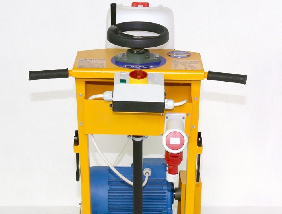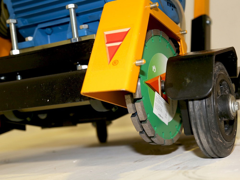 Вращающиеся вокруг вертикальной оси задние колёса позволяют без лишних усилий направлять машину в нужную сторону и вести криволинейный рез бетона, железобетона, асфальта, повторяя изгиб трещины |