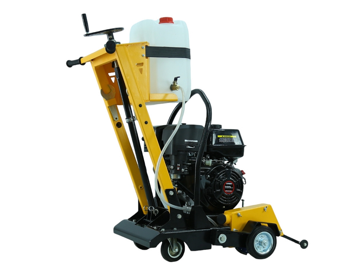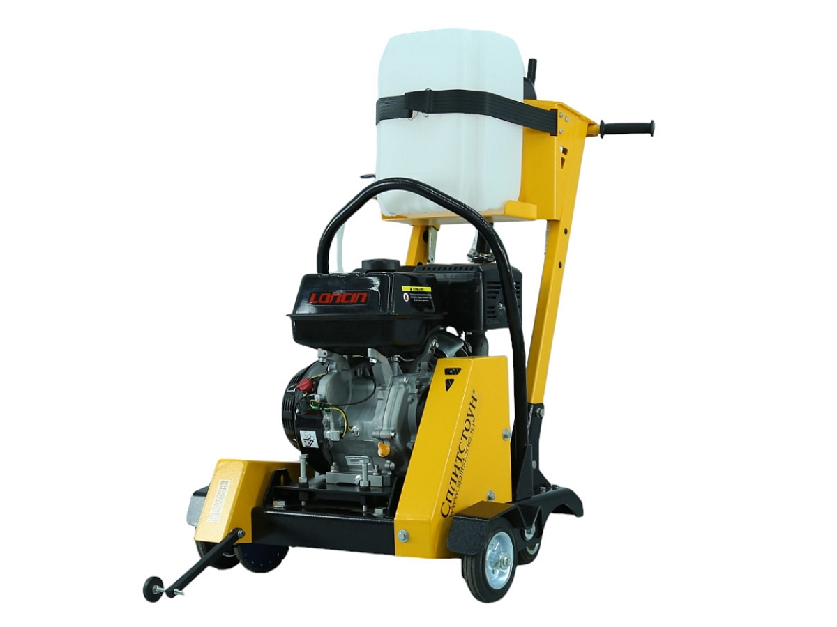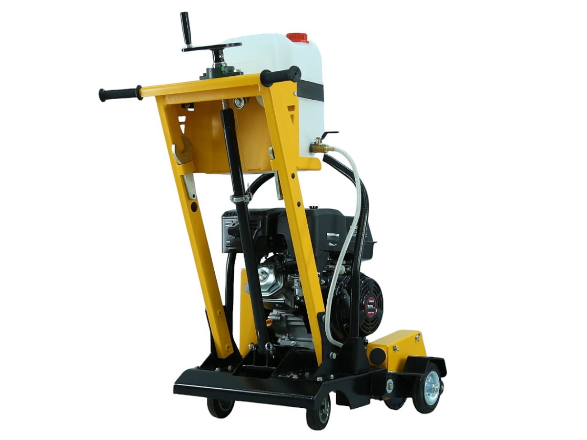 Вращающиеся вокруг вертикальной оси задние колёса позволяют без лишних усилий направлять машину в нужную сторону и вести криволинейный рез бетона, железобетона, асфальта, повторяя изгиб трещины |