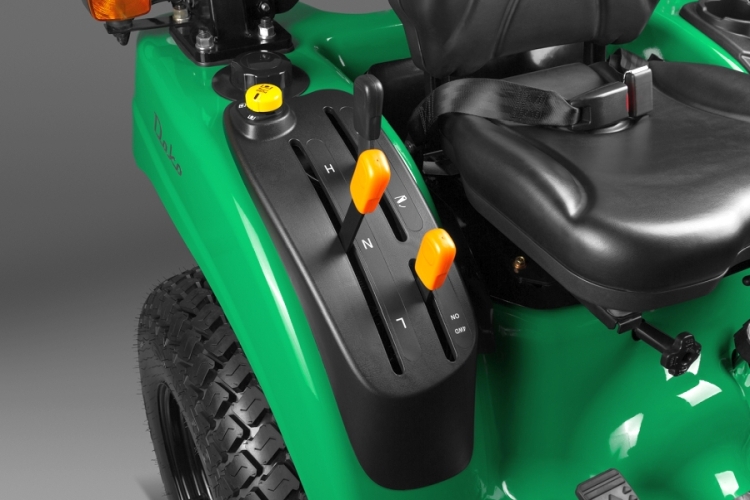 Гидростатическая трансмиссия Инновационная гидростатическая трансмиссия имеет два режима скоростей, что позволяет выбирать наиболее оптимальный режим в зависимости от сложности территории. С помощью отдельного рычага можно быстро переключиться между задним (2WD) и полным приводом (4WD). В особо сложных условиях можно заблокировать задний дифференциал, чтобы обеспечить одинаковый привод на задние колеса и улучшить управляемость машины. |