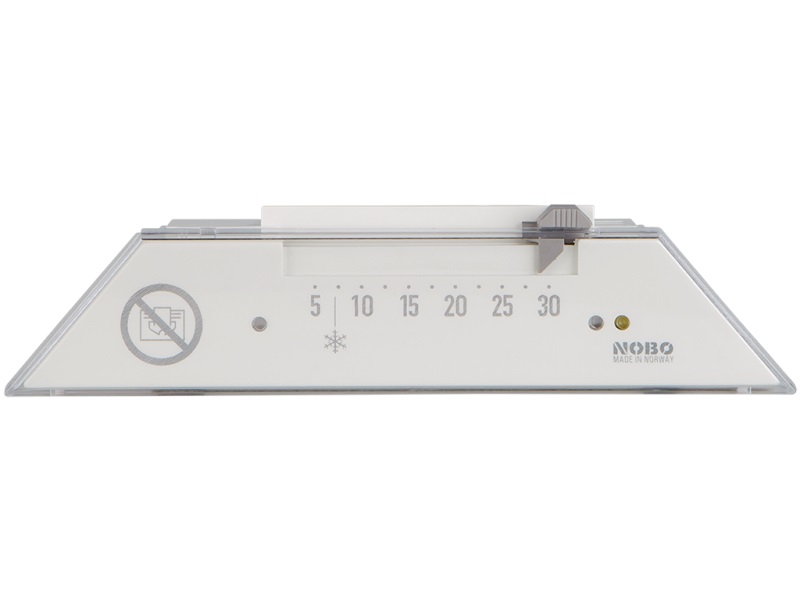 - На самом термостате нет бегунков, а комфортная и экономичная температура выставляются в приложении системы управления Nobo Energy Control на планшете, смартфоне или в блоке управления Oriоn 700.
