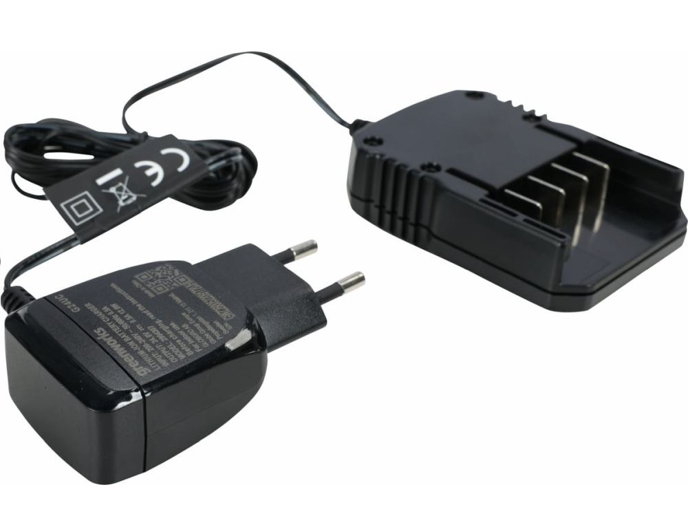 220-240В Зарядное устройство 24В. Cовместимость с аккумуляторами Greenworks G-24V. Чип для защиты. Индикатор заряда. Максимальный ток заряда 2 А. Время заряда батареи на 2 Ач - 60 мин, на 4 Ач - 120 мин.